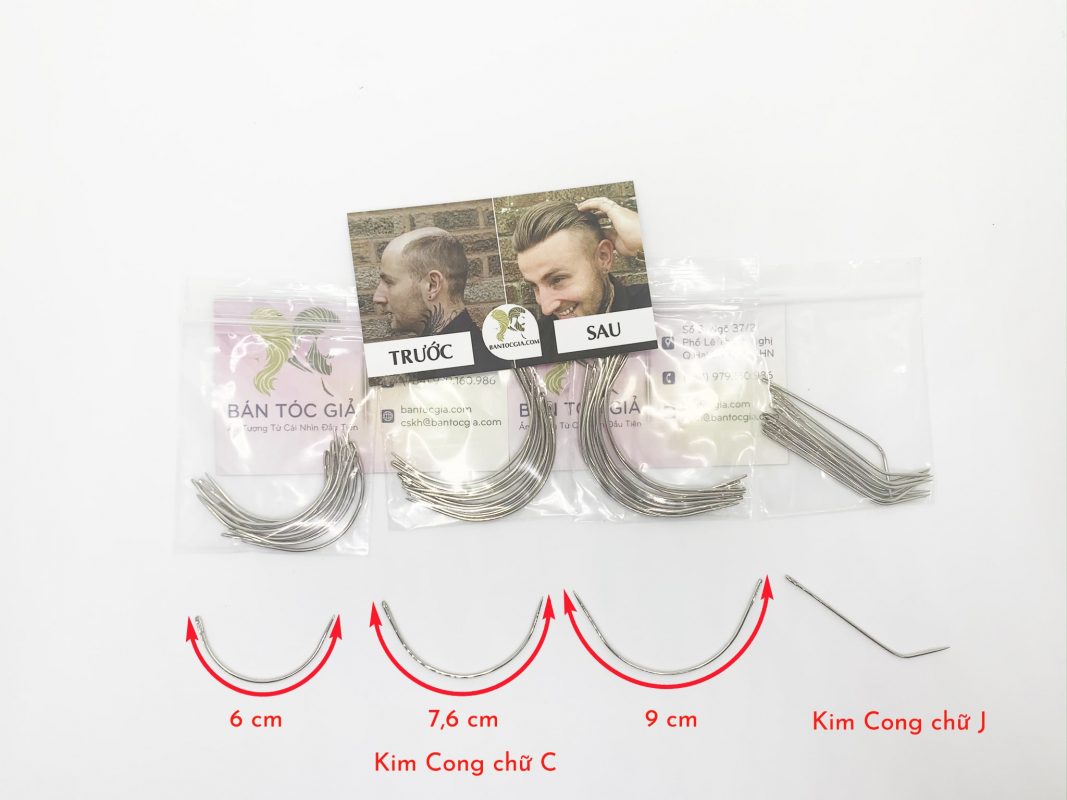 Bộ kim cong chữ J hỗ trợ nối tóc giả hoặc khâu kẹp vào bộ tóc giả dễ dàng hơn với đường cong chữ J,