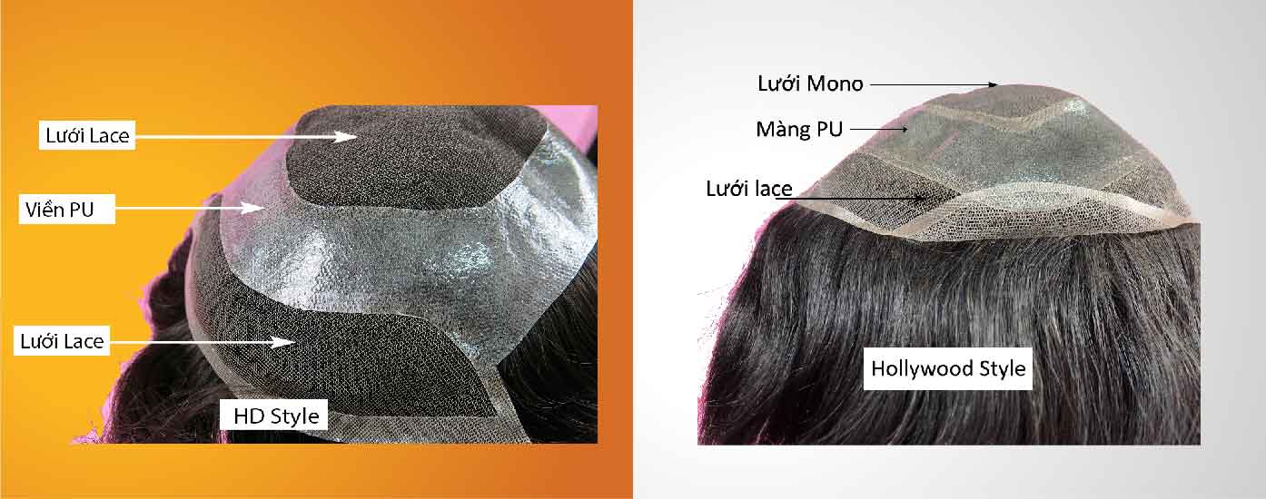 Nhìn thoáng qua thì nhiều người thấy giống với Mẫu Hollywood, nhưng có 1 số điểm khác nhau mà nhiều người không để ý đó chính là tấm lưới ở giữa đỉnh đầu, với hollywood style thì lưới ở giữa đỉnh đầu là lưới Mono, còn với dòng sản phẩm cao cấp hơn là HD Style đã được nâng cấp lên thành lưới lace .